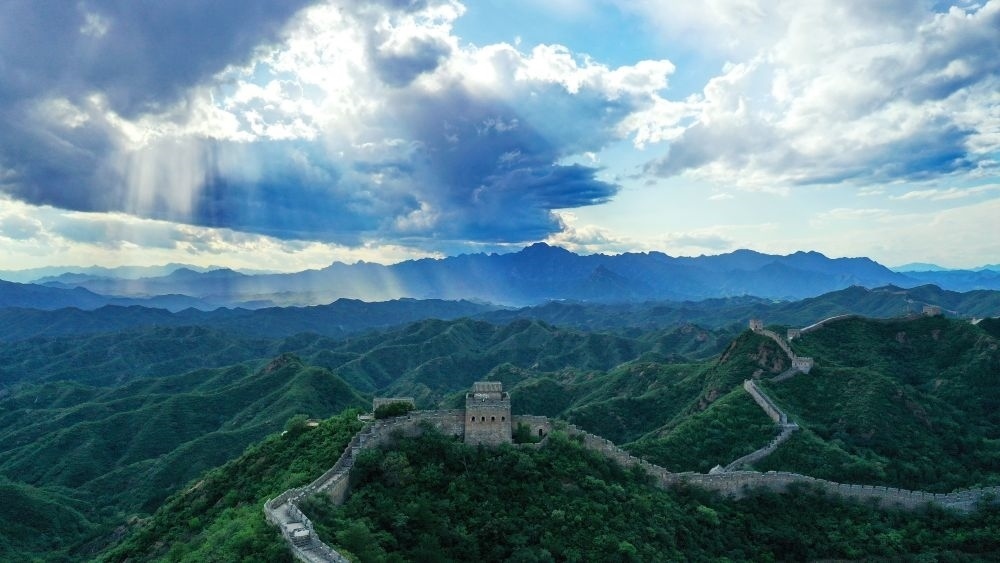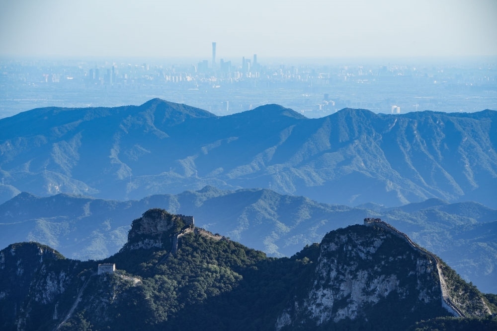 箭扣長城和遠(yuǎn)處北京城區(qū)的建筑群(2022年9月5日攝)。