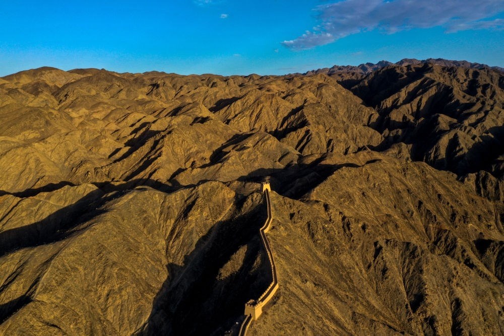 這是在甘肅省張掖市山丹縣拍攝的明長城(無人機照片,2023年5月16日攝)。