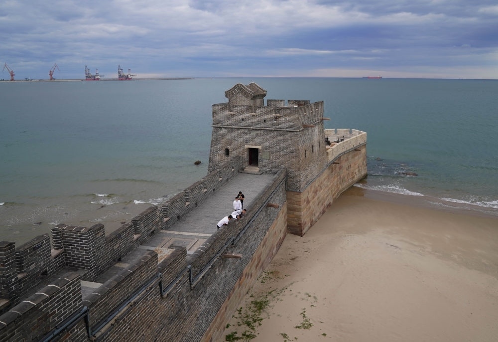 游客在河北省秦皇島市山海關(guān)老龍頭景區(qū)觀光(2022年6月6日攝)。