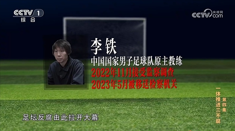 【解說詞】李鐵是本次專案第一個接受監(jiān)察調(diào)查并被留置的人員,事實證明,這個切入點的選擇是非常精準的。他既在多家俱樂部擔任過教練,又曾擔任中國國家男子足球隊主教練,在足球領(lǐng)域關(guān)系盤根錯節(jié),以他為突破口縱深挖掘、橫向拓展,牽出了從聯(lián)賽到國家隊、從俱樂部到足協(xié)的若干涉嫌違紀違法犯罪人員,以及種種黑幕和制度漏洞。