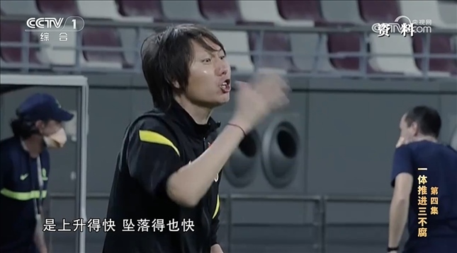 【解說詞】就這樣,李鐵如愿成為男子足球國家選拔隊主教練,到里皮辭職后,隨即被火線任命為男足國家隊主教練。確認獲得這個職位的第二天,李鐵就飛到武漢和卓爾俱樂部談交易。
