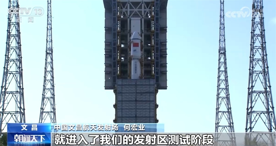 中國(guó)文昌航天發(fā)射場(chǎng) 何宏業(yè):船箭組合體轉(zhuǎn)到發(fā)射區(qū)之后,就進(jìn)入了發(fā)射區(qū)測(cè)試階段,主要完成相關(guān)的器件連接、貯箱的氣檢和置換以及電氣系統(tǒng)的功能檢查等加注發(fā)射的準(zhǔn)備工作。
