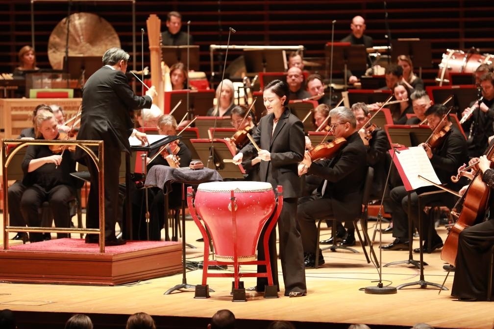 上海交響樂團打擊樂演奏家付藝霏當晚在《夜深沉》中演奏中國大鼓,又在《茉莉花》中演奏西方的定音鼓?!安还苁侵袊墓?,還是西方的鼓,在表演中都可以找到共通點?!彼f。