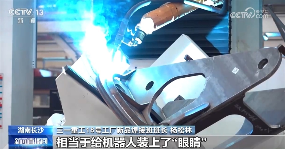 三一重工18號(hào)工廠新品焊接班班長 楊松林:這就是我工作的地方。這邊有一排排的工作島,穩(wěn)居“C”位的就是我們的轉(zhuǎn)臺(tái)焊接工作島。依托數(shù)字化電弧跟蹤技術(shù),相當(dāng)于給機(jī)器人裝上了“眼睛”,焊槍可以自己去尋找鎖定,并跟蹤焊點(diǎn),實(shí)現(xiàn)連續(xù)性的焊接,在行業(yè)還是首創(chuàng),我們的效率和質(zhì)量都大大提升了。