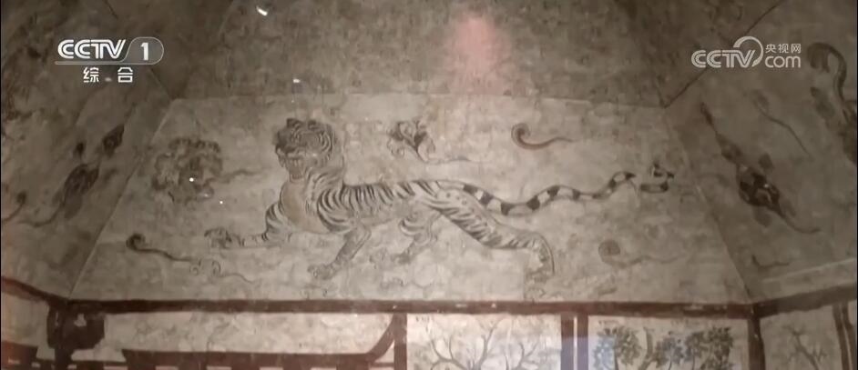 太原市文物考古研究院文物考古研究所副所長(zhǎng) 劉?。?/strong>墓室四壁畫的是樹下老人圖,還有一個(gè)比手勢(shì),就和咱們今天的“耶”(很像)。
