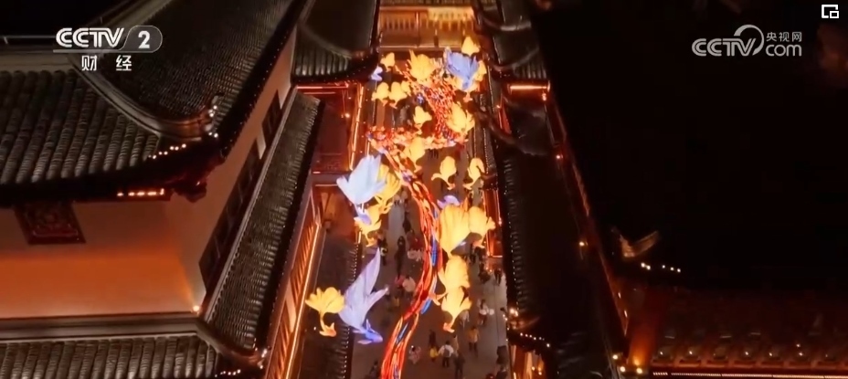 2024年,豫園燈會(huì)推出了造型各異的龍燈組,搭建難度為歷年最大的一次。以“一夜魚龍舞”燈組為例,這組燈由400多條“小魚燈”組成,匯聚成一條游龍,寓意“魚化龍”,還原辛棄疾《青玉案·元夕》中“一夜魚龍舞”的場(chǎng)景。