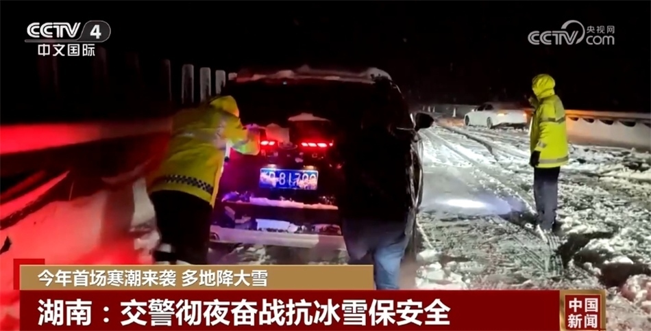 湖南西部、北部以及部分高海拔山區(qū)出現(xiàn)大雪,湖南交警徹夜奮戰(zhàn)抗冰雪,及時(shí)排除險(xiǎn)情,全力以赴保證公路安全暢通。在長(zhǎng)芷高速,因上坡路段積雪較深,部分小型汽車被困無(wú)法前行,婁底高速警察聯(lián)合司乘人員將百余臺(tái)車輛逐一推上坡道。