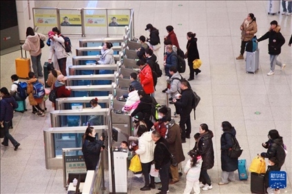 1月26日,旅客在徐州東站排隊檢票乘車。新華社發(fā)(劉建華攝)