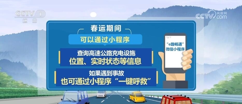 為提升今年春運(yùn)服務(wù),交通運(yùn)輸部還上線“e路暢通”微信小程序,春運(yùn)期間,大家可以通過小程序,查詢高速公路充電設(shè)施位置、實(shí)時(shí)狀態(tài)等信息,如果遇到事故,也可通過小程序“一鍵呼救”。