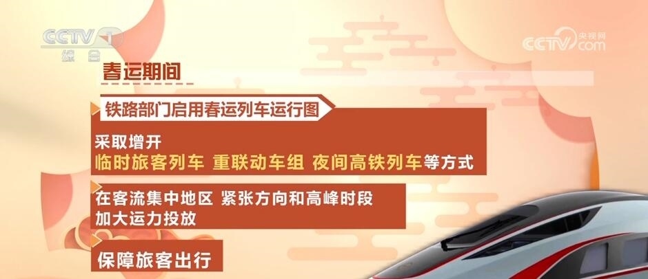 春運(yùn)期間,鐵路部門啟用春運(yùn)列車運(yùn)行圖,采取增開臨時(shí)旅客列車、重聯(lián)動(dòng)車組、夜間高鐵列車等方式,在客流集中地區(qū)、緊張方向和高峰時(shí)段加大運(yùn)力投放,保障旅客出行。國鐵濟(jì)南局春運(yùn)期間安排臨客超90對(duì),其中開行去往北京、上海、石家莊、哈爾濱、福州等方向跨省臨客47對(duì)。國鐵武漢局春運(yùn)首日加開臨客49對(duì),哈爾濱鐵路部門安排開行臨客列車74對(duì),太原鐵路部門安排開行臨客列車64對(duì)。