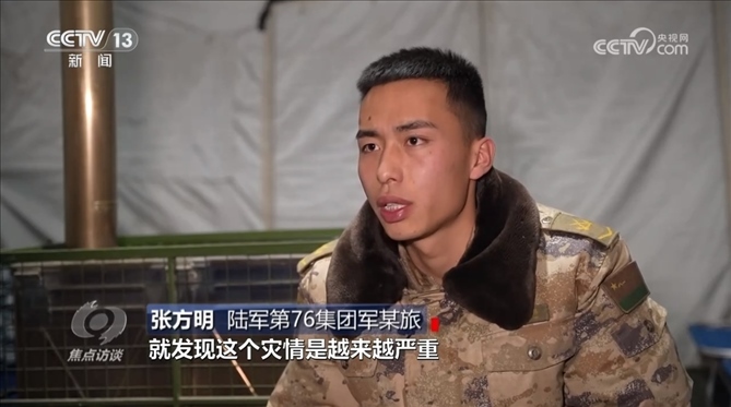 陸軍第76集團(tuán)軍某旅章新禹:“據(jù)我們了解,他家五間房屋全部開裂,家人在院子里面搭了一個(gè)帳篷,我們優(yōu)先讓他回去解決自己的事情,然后再返回部隊(duì)。”