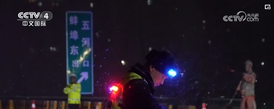 安徽多地降雪 交管電力等部門加強巡邏保安全
