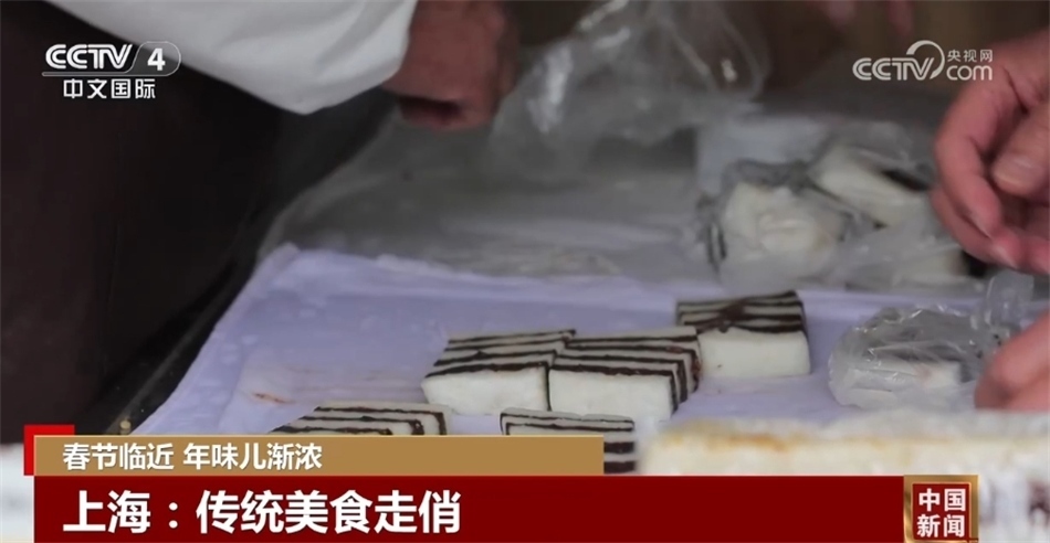 在上海,許多古鎮(zhèn)張燈結(jié)彩迎接春節(jié),老字號食品店也排起了長龍。在一家糕團(tuán)店前,購買傳統(tǒng)糕點的顧客絡(luò)繹不絕,崇明糕、定勝糕、紅糖糕等各具特色的傳統(tǒng)糕點,不僅香甜美味,還能為新年討得一個好彩頭。