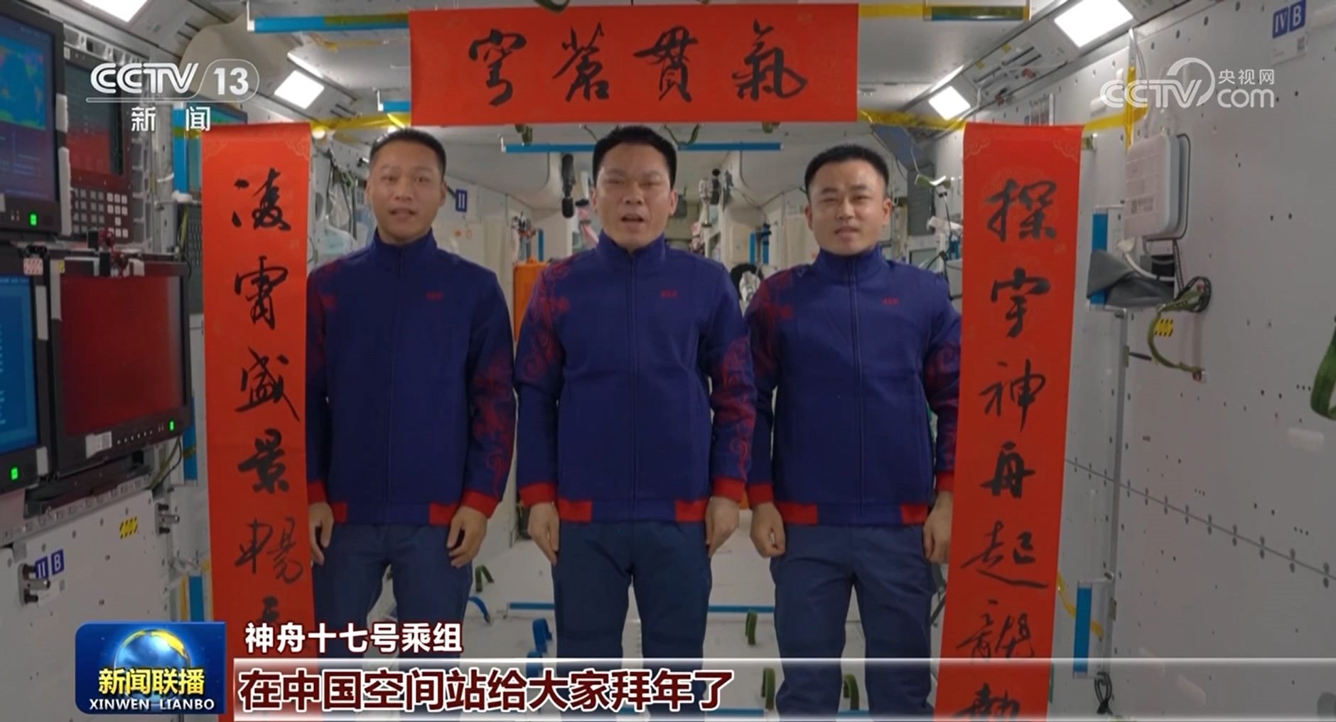 目前,神舟十七號航天員乘組已在軌駐留100多天,他們將首次在太空度過春節(jié)。三名航天員在距離地球約400公里的中國空間站,為全國人民送上來自太空的新年祝福。