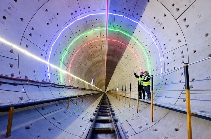 2024年2月3日,工作人員在北京軌道交通22號線河北段盾構(gòu)隧道內(nèi)進行巡查。新華社記者 王曉 攝