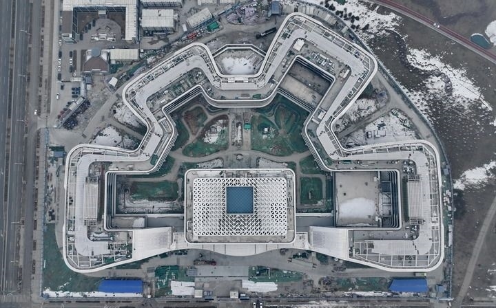 這是位于雄安新區(qū)啟動區(qū)內(nèi)的中國衛(wèi)星網(wǎng)絡集團有限公司總部大樓建設現(xiàn)場(2024年1月31日攝,無人機照片)。新華社記者 牟宇 攝