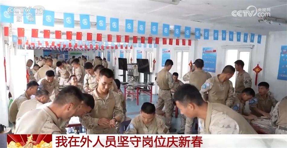 新春佳節(jié)之際,中國第27批赴剛果(金)維和工兵分隊30余名官兵堅守在兩個分遣點,執(zhí)行道路修復(fù)和伴隨保障任務(wù),醫(yī)療分隊派出巡診服務(wù)隊行程超過200公里。在完成緊張繁重的執(zhí)勤任務(wù)之余,官兵們掛燈籠、貼春聯(lián)、包餃子,在濃濃年味中一表思鄉(xiāng)之情。