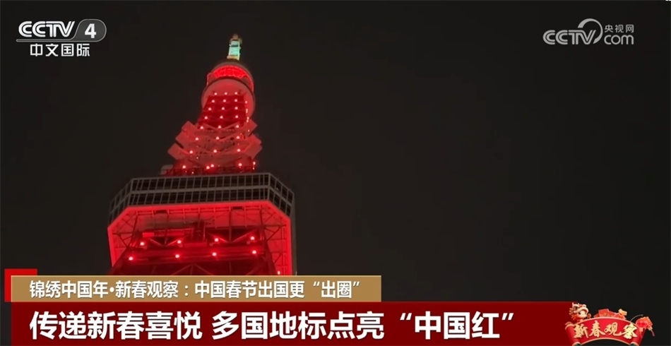 為歡慶春節(jié),多國地標(biāo)建筑都點(diǎn)亮了“中國紅”。英國倫敦的巨型摩天輪“倫敦眼”亮起紅色和金色燈光,象征幸福吉祥;在日本東京,東京塔換上一身紅裝,為龍年送上祝福;加拿大最大城市多倫多市的地標(biāo)建筑加拿大國家電視塔也在落日一個(gè)小時(shí)后開始“亮紅”,迎接龍年新春的到來。