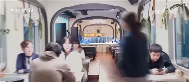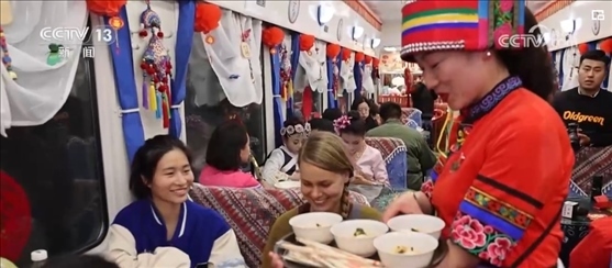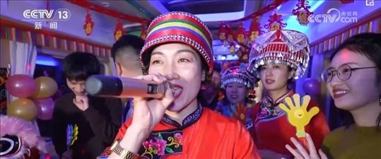 就在記者采訪(fǎng)時(shí),列車(chē)員邀請(qǐng)大家去一號(hào)車(chē)廂參加一個(gè)聯(lián)歡會(huì)。春節(jié)爆滿(mǎn)的車(chē)廂,讓他們也感受到了濃濃的年味兒。