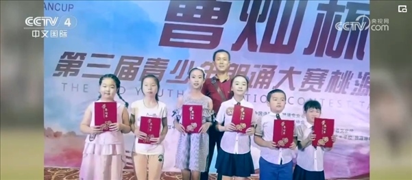 最初只有五名學生的朗誦團“沅水童聲”就這樣成立了。上課和朗讀,幾乎占據(jù)了郭云兵的全部時間,他買來教材、打卡各個平臺、總結朗讀技巧,他把舞臺從教室搬到操場上、沅水河邊,鼓勵大家勇于表達……在2017年的“曹燦杯”全國青少年朗誦大賽中,孩子們一路過關斬將殺進省賽,捧回3塊金牌。很多孩子變得越來越自信,也在成長中逐漸懂事,感受到父母的不易。