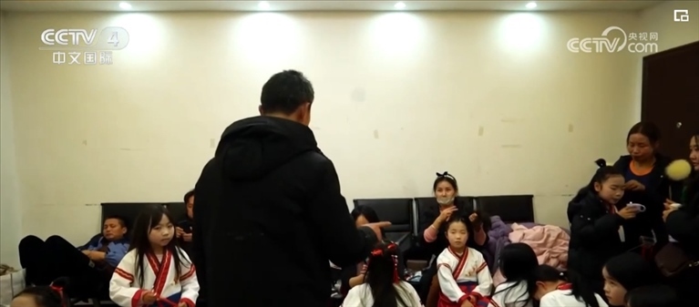 學生們要放寒假了,郭云兵的寒假計劃已經(jīng)排的滿滿當當,其中一項就是帶領朗誦團參加當?shù)厣賰捍和淼匿浿啤TS多新加入的成員還是第一次站上舞臺,上場前郭云兵給他們加油打氣。