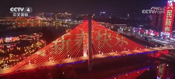 夜幕降臨,新春光影秀點(diǎn)亮城市夜景,多個(gè)城市地標(biāo)建筑流光溢彩,市民游客共同感受龍年的歡騰圖景。