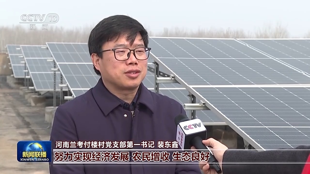 河南蘭考付樓村黨支部第一書記 裴東鑫:習(xí)近平總書記要我們?cè)诰G色發(fā)展中,努力實(shí)現(xiàn)經(jīng)濟(jì)發(fā)展、農(nóng)民增收、生態(tài)良好。我們大力實(shí)施了整個(gè)村莊的零碳化改造?,F(xiàn)在我們?nèi)迥旯夥l(fā)電量超過120萬度,完全滿足我們整個(gè)村子的用電需求,我們村集體一年增收十幾萬元。