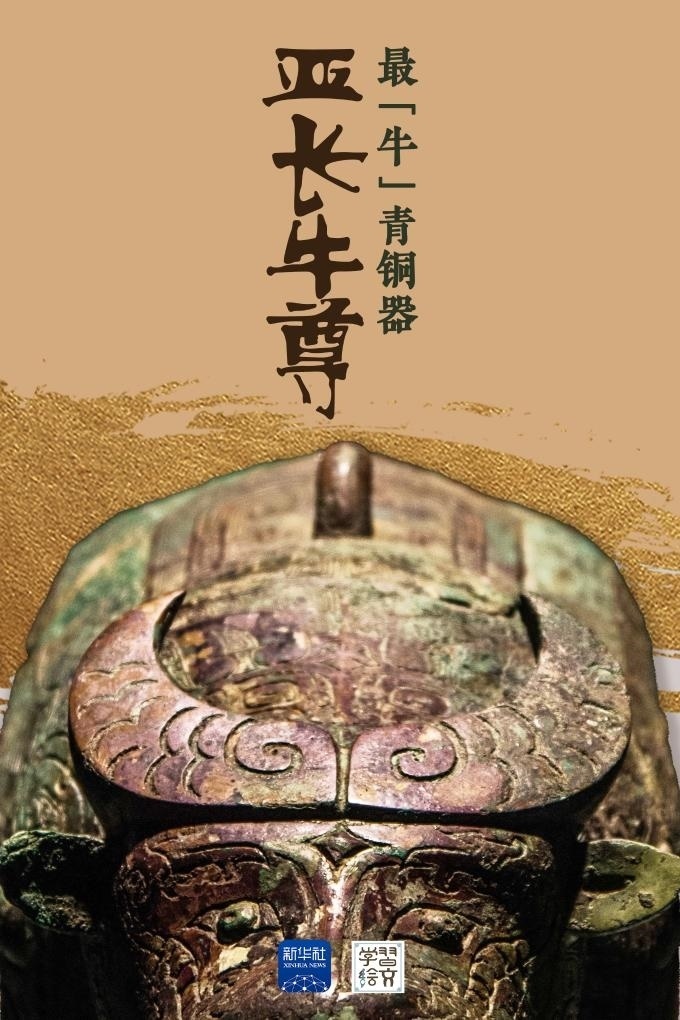 亞長牛尊是截至目前殷墟發(fā)現(xiàn)的唯一一件牛形青銅容器?!皝啞笔俏涔俚姆Q謂,“長”是家族姓氏,墓主人亞長是商王朝南部“長”國的部落首領(lǐng)。