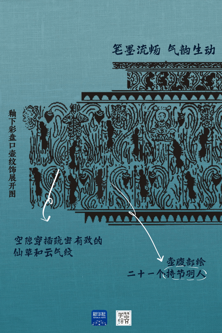 “這件藏于六朝博物館的青瓷釉下彩羽人紋盤口壺于1983年出土,精湛的釉下彩繪工藝,改變了人們對釉下彩工藝始于唐代的認(rèn)識,把我國釉下彩繪工藝出現(xiàn)的時間提前了近五百年?!彼窝嗾f。