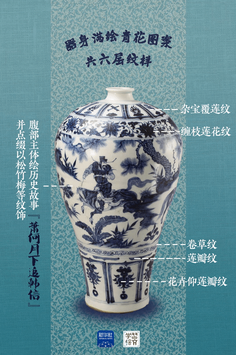 “元代是中國陶瓷史上不容忽視的重要時期?!彼窝嘟榻B,這件藏于南京市博物館的元青花蕭何月下追韓信圖梅瓶向人們展示了元代制瓷水平。