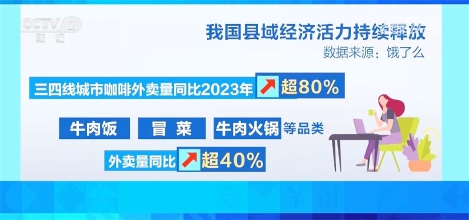 今年以來,三四線城市的餐飲消費(fèi)活力持續(xù)釋放。來自某生活服務(wù)平臺(tái)的數(shù)據(jù)顯示,今年開年后,三四線城市咖啡外賣量同比去年增長(zhǎng)超過80%,牛肉飯、冒菜、牛肉火鍋等品類外賣量同比增長(zhǎng)超過40%。春節(jié)假期期間,三四線城市螺螄粉、甜品、沙拉輕食、咖啡和奶茶果汁等熱門餐食的外賣量更是同比增長(zhǎng)超過1倍。