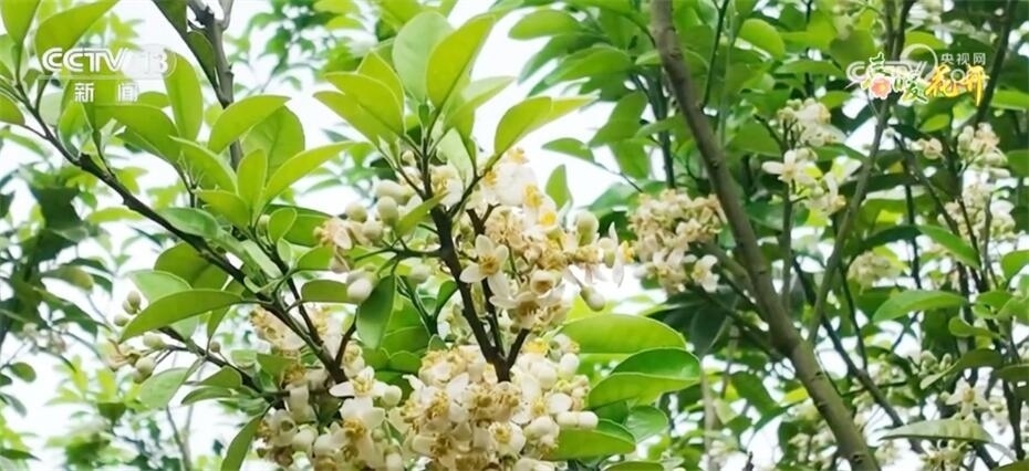 眼下,在廣東化州平定鎮(zhèn)大嶺村,化橘紅花迎來了盛花期,漫山綻放,春意濃濃。雪白的花朵從片片濃綠中探出頭來,花蕊橙黃、花瓣潔白。