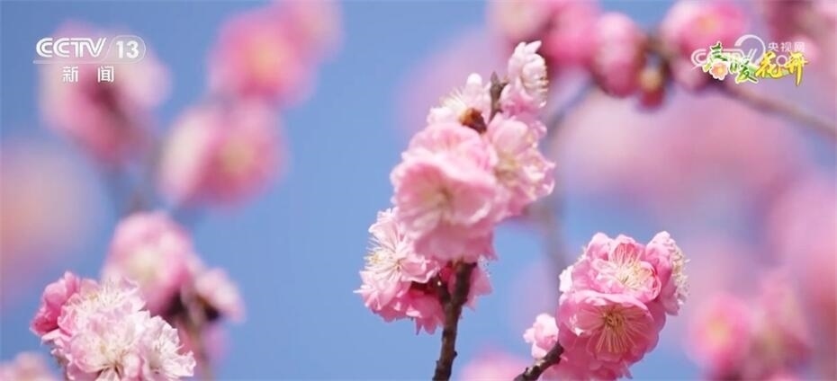 跟隨鏡頭,我們來到安徽宿州市蕭縣王窩山的梅花園,這里的1500畝梅花已陸續(xù)進入盛花期,從空中俯瞰,山崗仿佛披上了一層粉色的薄紗。這些紅梅開得錯落有致、千姿百態(tài),像是報春的使者,游客漫步其中,感受春天的氣息。