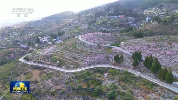 桃紅李白、花滿枝頭,貴州印江萬畝石漠化生態(tài)治理公園里,游客們賞花拍照,怡然自得。過去亂石灘,今日“花果山”,造福群眾,游客點贊。