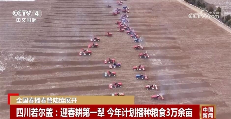 在四川若爾蓋,傳統(tǒng)農(nóng)耕項目“二牛抬杠”迎來春耕第一犁,騎手們開著旋耕機在田地間輪回翻耕。農(nóng)業(yè)生產(chǎn)與鄉(xiāng)風文明有機結合,開啟了今年計劃播種糧食3萬余畝的工作。