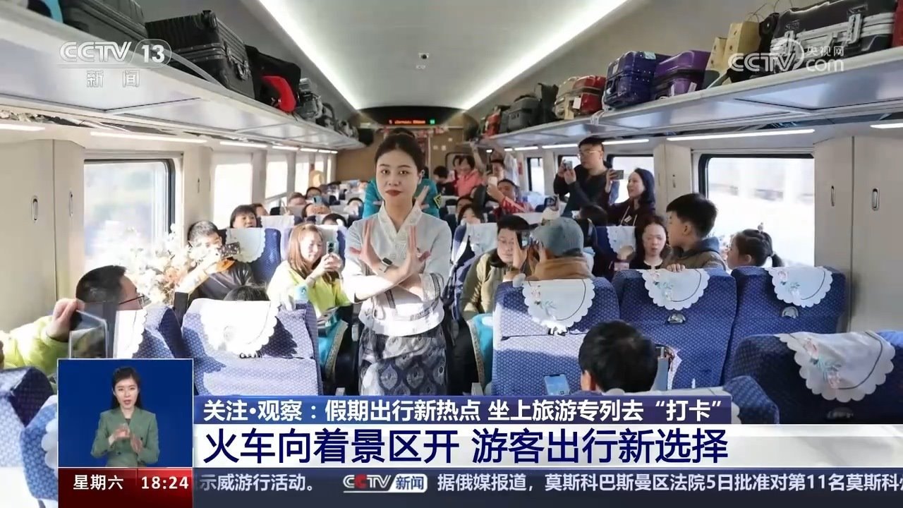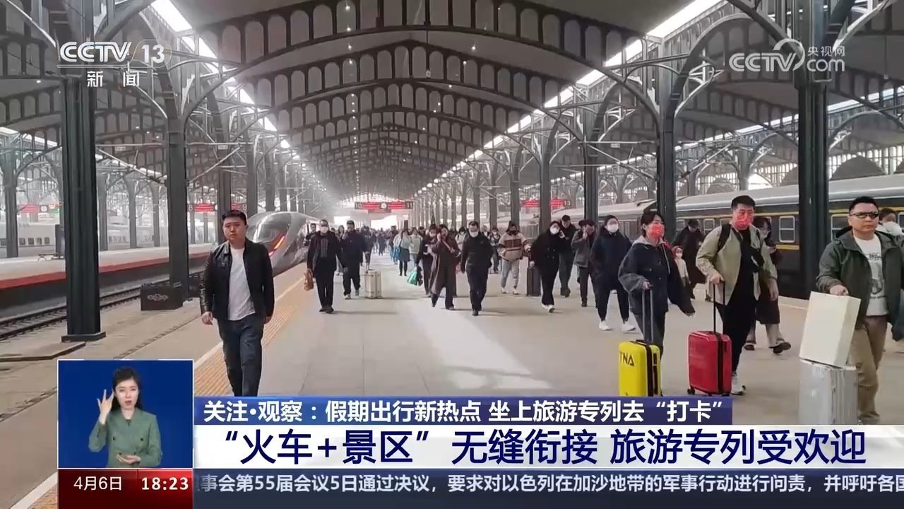 央視網(wǎng)消息:清明春花放,踏青好時節(jié)。坐著火車去旅行,縱跨千山,橫飛萬水,用速度與激情串聯(lián)美景。今年清明假期第一天也就是4月4日,全國鐵路發(fā)送旅客1853.6萬人次,創(chuàng)今年以來單日旅客發(fā)送量新高。以網(wǎng)紅城市、網(wǎng)紅景區(qū)為目的地的客流增幅明顯,各地增開的臨客列車也瞄準了游客“打卡地”。坐上旅游專列去旅行,可以給移步換景的美好出游心愿帶來多少種可能呢?進入今天的關(guān)注觀察。