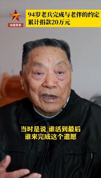 94歲老兵曾讓泉,78歲簽下捐贈眼角膜協(xié)議,85歲開始捐款,至今共計20萬元。曾讓泉說,老伴2014年走了,當時約定誰活到最后誰來完成每年省下錢來捐款這個遺愿。