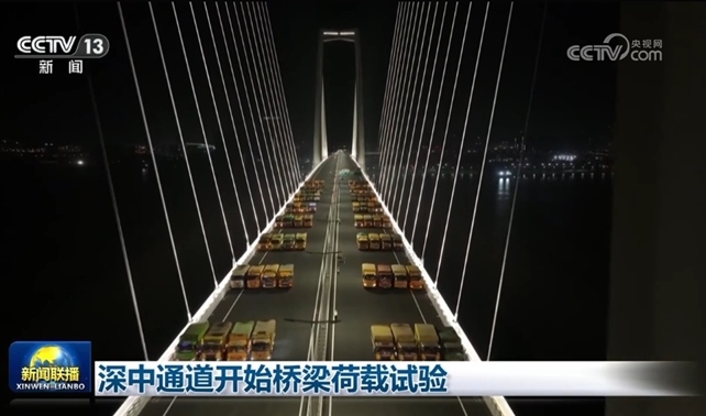 央視網(wǎng)消息(新聞聯(lián)播):今天(4月13日),粵港澳大灣區(qū)超級工程深中通道進(jìn)入橋梁荷載試驗階段。在中山大橋,64輛大貨車停在橋梁跨中位置,檢測橋梁位移和應(yīng)力情況,測試動力參數(shù)、汽車沖擊系數(shù)等。