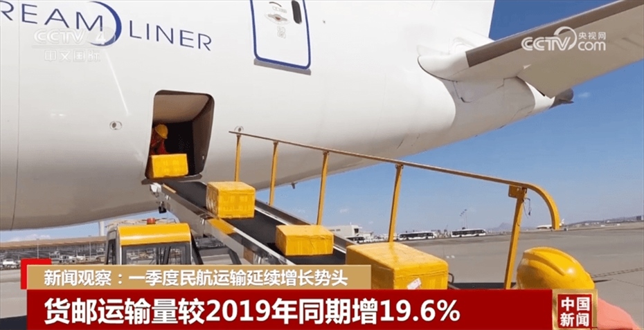 貨運方面,全行業(yè)一季度共完成貨郵運輸量200.7萬噸,為歷年一季度貨運量最高值,同比增長34.4%,較2019年同期增長19.6%。其中,國內航線較2019年同期增長8.2%,國際航線較2019年同期增長43.6%。
