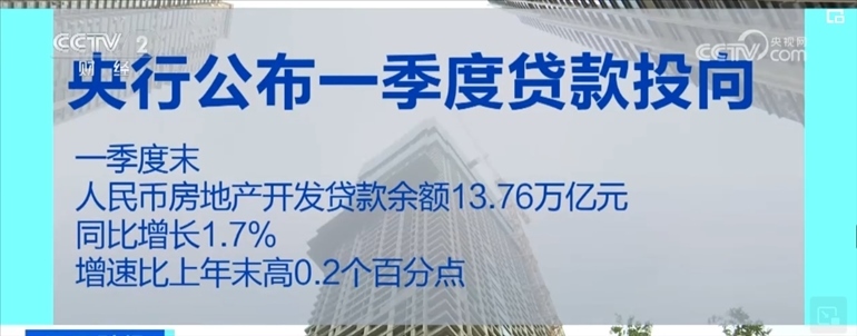 房地產(chǎn)貸款也呈現(xiàn)回暖跡象。一季度末,人民幣房地產(chǎn)開發(fā)貸款余額13.76萬億元,同比增長1.7%,增速比上年末高0.2個百分點。