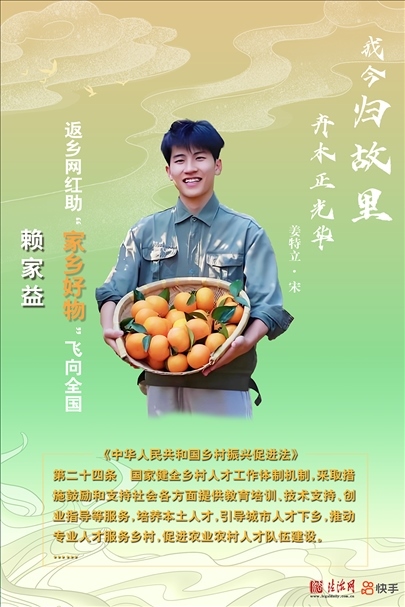 2021年大學(xué)畢業(yè)時,因為在網(wǎng)上發(fā)布的視頻備受歡迎,賴家益已經(jīng)是一名小有名氣的“網(wǎng)紅”。作為師范生,他堅定地選擇回鄉(xiāng)任教。在家鄉(xiāng),他通過短視頻和直播帶貨,為當(dāng)?shù)卮迕皲N售農(nóng)產(chǎn)品和土特產(chǎn),幫助更多人返鄉(xiāng)就業(yè)。