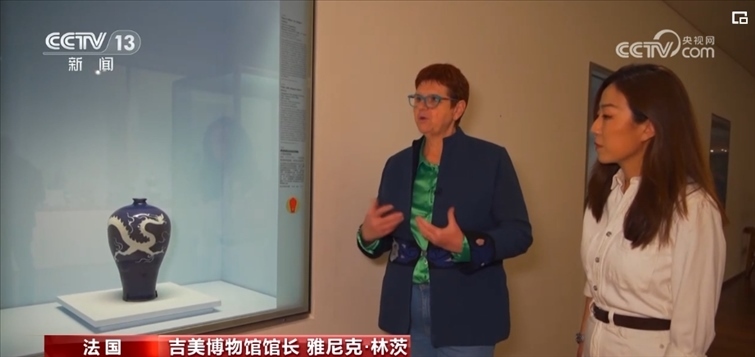 吉美博物館館長林茨女士被中國文化深深吸引。當(dāng)問到在博物館里上萬件藏品中,她最喜歡哪一件時(shí),她幾乎沒有遲疑地把我們帶到中國瓷瓶前。