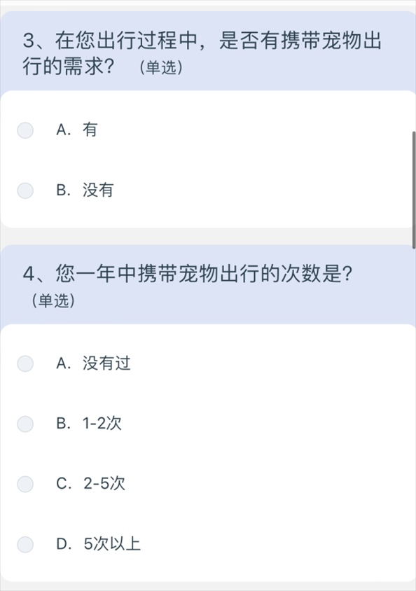 問卷涉及寵物運輸服務定價、非養(yǎng)寵人士建議等