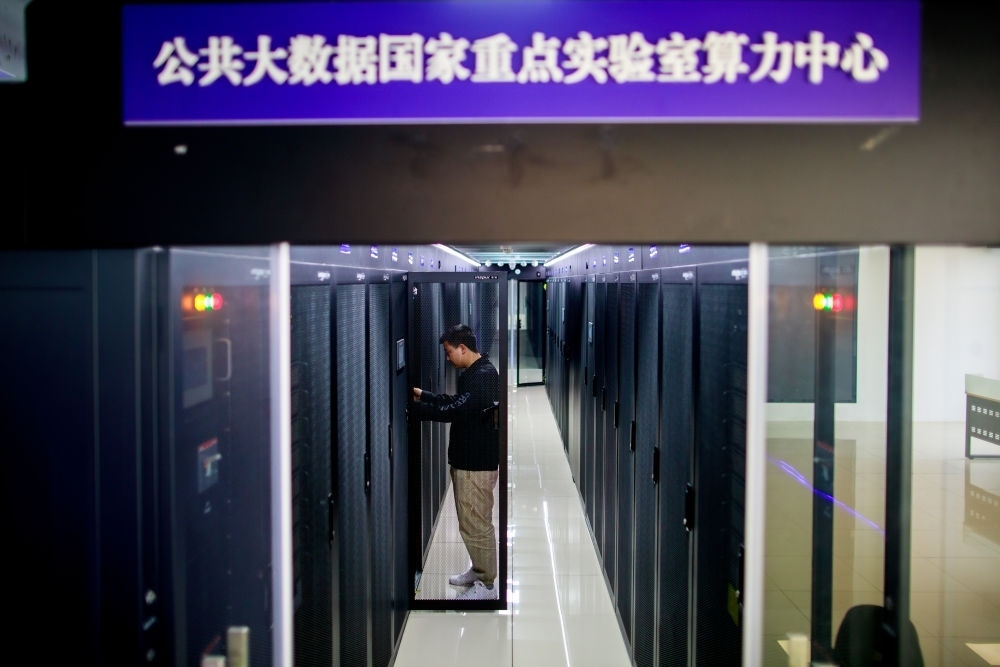 2023年5月23日,工作人員在貴州大學(xué)省部共建公共大數(shù)據(jù)國家重點實驗室算力中心機房檢查設(shè)備。新華社記者 劉續(xù) 攝
