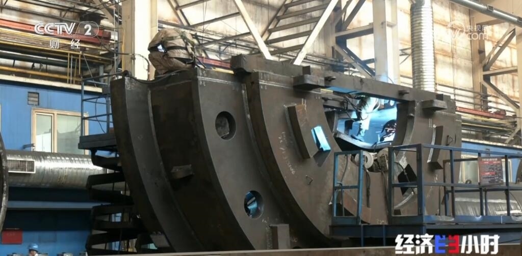 2019年,他們引進了新設(shè)備,車床上正在加工的工件是近期準備交付給客戶用在抽水蓄能項目上的關(guān)鍵部件。像這樣結(jié)構(gòu)復(fù)雜的零件,如果使用之前的老舊設(shè)備加工,至少需要更換兩三臺不同的加工設(shè)備,需要半個月以上才能完成加工。而這臺新型設(shè)備則可以不挪動工件就能完成所有加工工序,工期也可以縮短到7—10天。