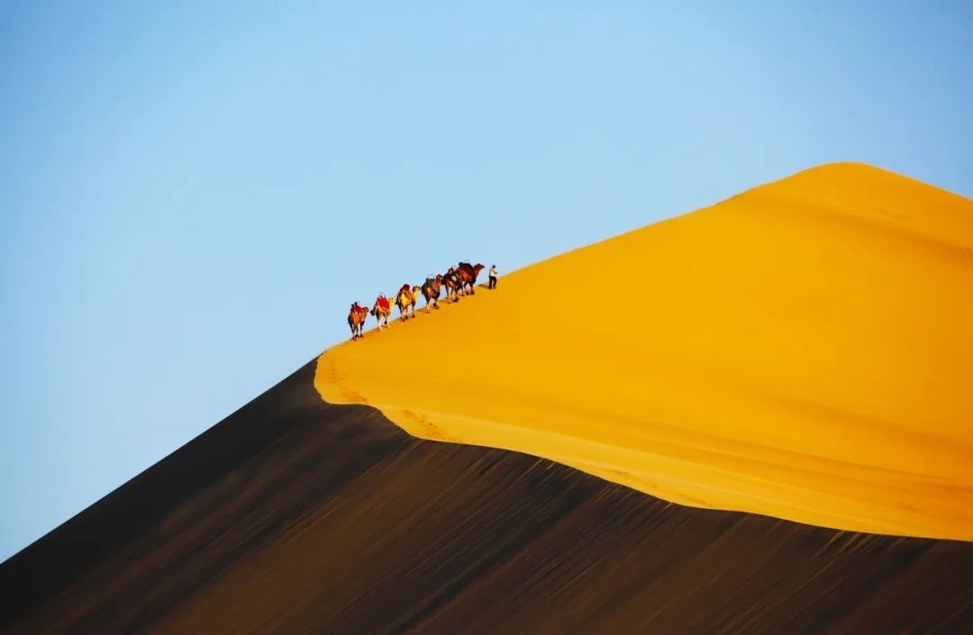 夕陽下的鳴沙山。