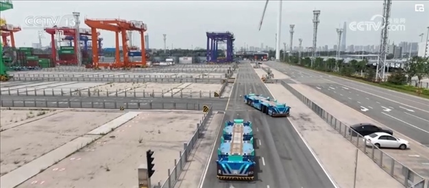 在堆場和貨輪之間有92個承擔運輸任務的智能機器人,它們通過激光雷達、5G技術,轉彎、減速、避讓,每跑一趟與周邊設備會進行上百次信息交互。