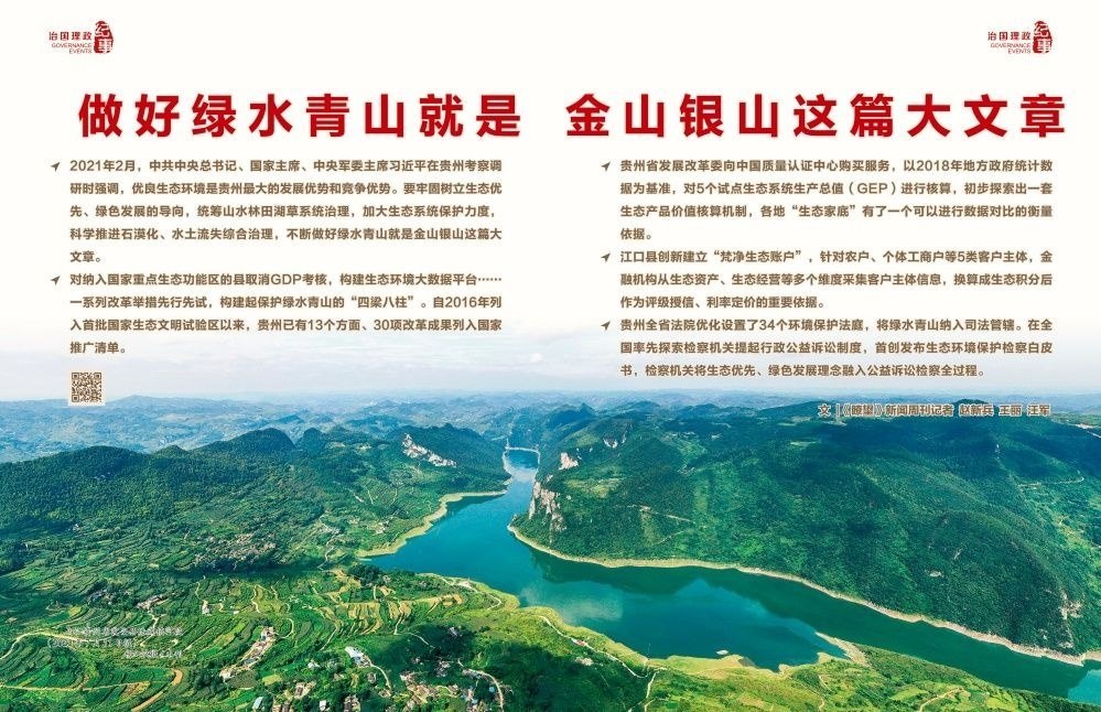 2022年初,《國務(wù)院關(guān)于支持貴州在新時代西部大開發(fā)上闖新路的意見》出臺,正式賦予貴州生態(tài)文明建設(shè)先行區(qū)的戰(zhàn)略定位,要求貴州堅持生態(tài)優(yōu)先、綠色發(fā)展,筑牢長江、珠江上游生態(tài)安全屏障,科學(xué)推進石漠化綜合治理,構(gòu)建完善生態(tài)文明制度體系,不斷做好綠水青山就是金山銀山這篇大文章。
