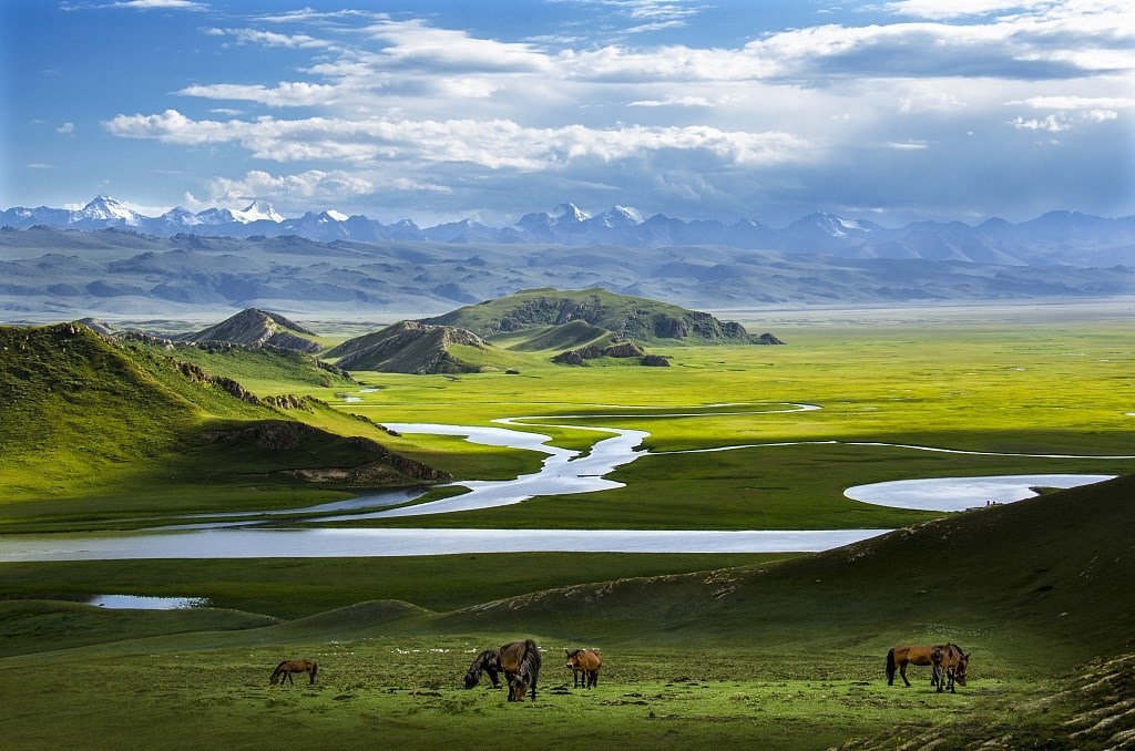 位于天山南麓的巴音布魯克既是中國(guó)僅次于內(nèi)蒙古鄂爾多斯的第二大草原,又是中國(guó)最大的高山草原,巴音布魯克草原共有大小13處泉水,7個(gè)湖泊,以及20條河流。蜿蜒在草原上的開都河素有“九曲十八彎”的美稱。
