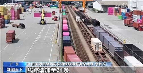 鹽田國際集裝箱碼頭海鐵聯(lián)運服務總經(jīng)理余秋文介紹:“截至今年4月份,我們共開通了14個海鐵聯(lián)運內(nèi)陸港,線路增加至31條,覆蓋了大灣區(qū)、華中、西南等重要的經(jīng)濟區(qū)域?!?/p>